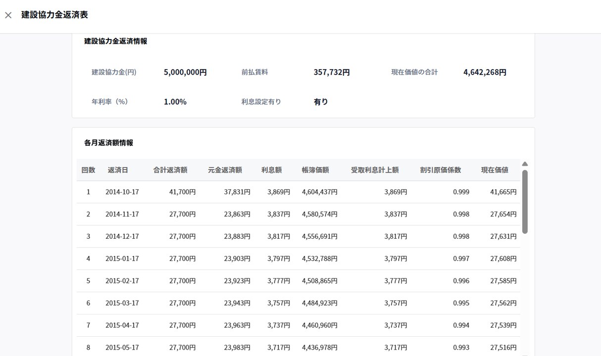 これまで管理機能のみ提供していた「建設協力金」について、新たに返済表を確認できる機能を追加しました。
